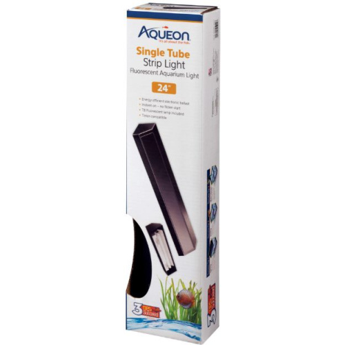 Aqueon Fluorescent Strip Light Black is used with glass tops for proper aquarium lighting. Fluorescent models feature internally mounted electronic ballasts with instant-start circuits that allow operation on a timer or switch-controlled outlet. All fluorescent models also include full spectrum fluorescent lamps.