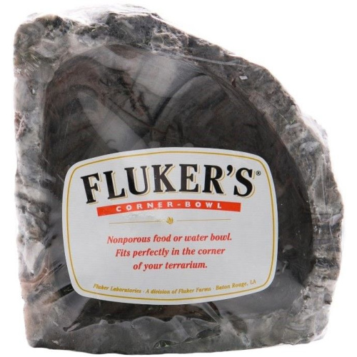Flukers Reptile Corner Bowl provides a space-saving feeding area for any reptile, amphibian, or invertebrate. Designed to fit flush against the corners of your terrarium and blend in with the scenery, this bowl may be used for food or water.