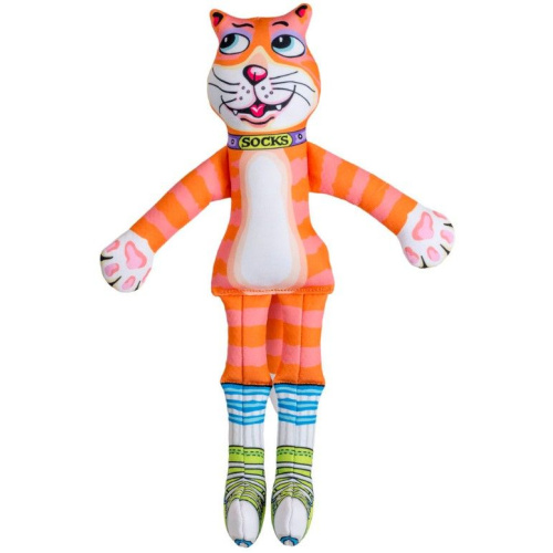 Fuzzu Socks large dog toy is a fun and durable squeaky dog toy that will entertain your dog during playtime. This Socks dog toy is a wonderful gift for dogs that like to chew. Designed to look like a sneaky cat that your dog will love fetch while stimulating its mind. Your pet would like to play with this Fuzzu Socks toy all day long.