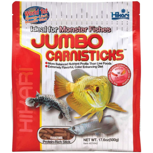 Hikari JumboCarni Sticks are ideally suited for Monster Carnivorous Fish. These floating sticks are perfect for Arowana & Top feeding Monster Carnivores.