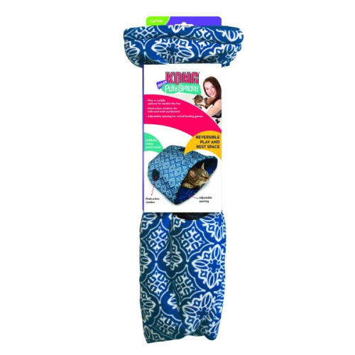 The KONG Play Spaces Haven is an all-in-one toy for feline fun. The reversible pouch lets cats "burrow" and curl up for a comfy nap, while the refillable catnip pocket, crinkle sound and mesh windows provide plenty of options for active play.