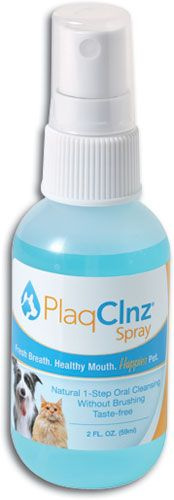 Discover the alternative to troublesome pet dental cleanings! PlaqClnz Pre-Treatment Oral Spray attacks tartar build-up and gently soothes irritated gums. Formulated with an all-natural zinc complex, this alcohol-free spray is designed to help remove plaque and tartar and keep teeth and gums healthy without the need for brushing.