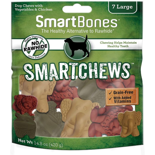 SmartBones Safari Smart ChewsSmartBones Large Smart Chews are healthy, delectable treats made with real chicken, wholesome veggies, and no rawhide. This allows easier digestion while still providing a satisfying chewing experience for your furry friend. Smart Chews also help maintain healthy teeth!