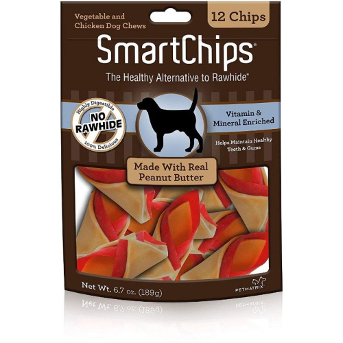 SmartBones Peanut Butter SmartChips are the healthy alternative to rawhide. These 100% rawhide-free chips are made with real peanut butter and are vitamin and mineral enriched for your dogs health. These Peanut Butter SmartChips are 99 percent digestible and help promote proper dental health through chewing!