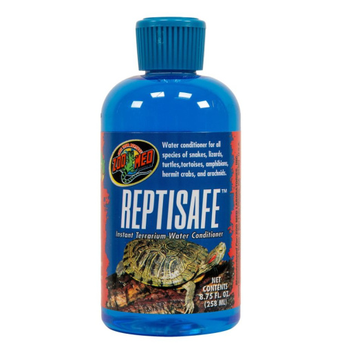 Zoo Med ReptiSafe Water ConditionerZoo Med ReptiSafe Instant Terrarium Water Conditioner removes chloramines and chlorine, detoxifies nitrites, and removes toxic ammonia. It provides essential ions and electrolytes and helps in hydrating new animals.